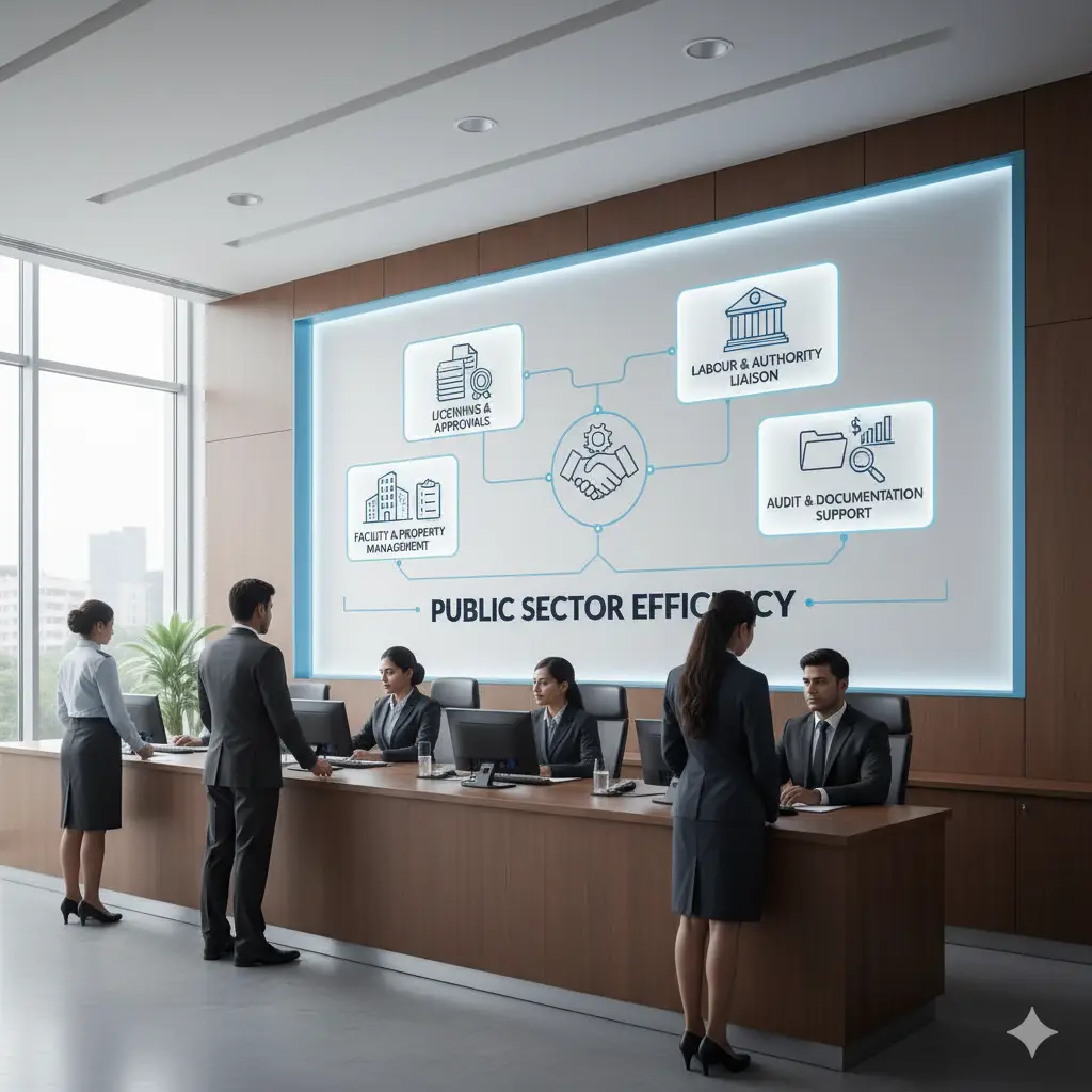 We assist government bodies with facility, compliance, and liaisoning solutions.